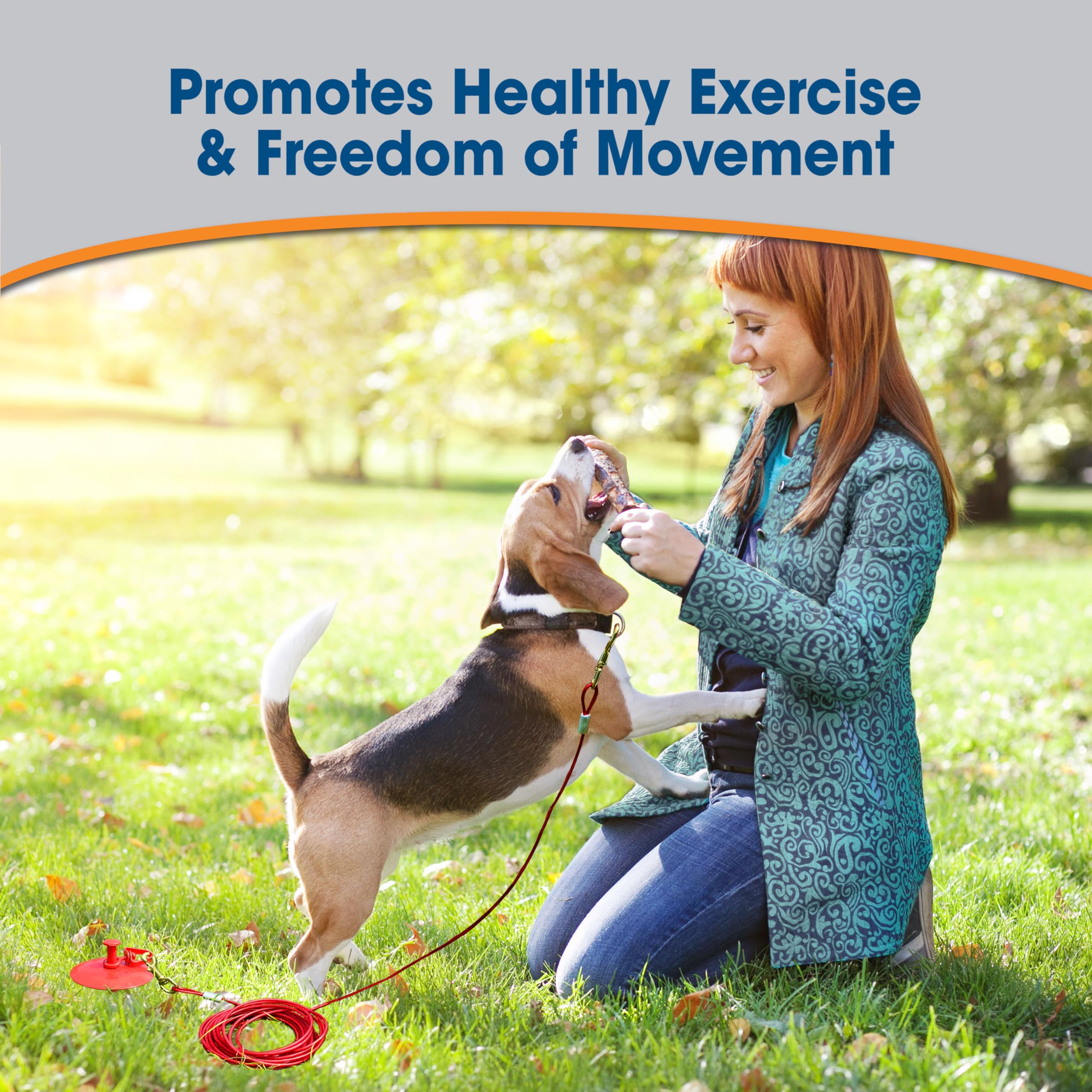 - Recommended for dogs under 50 pounds; heavy-duty stake measures 23 inches with a 25-foot cable